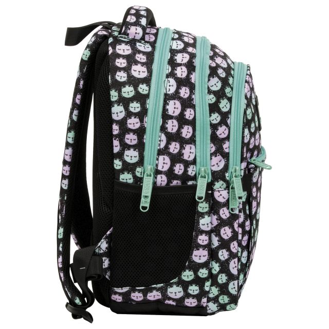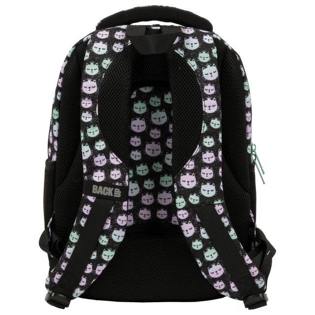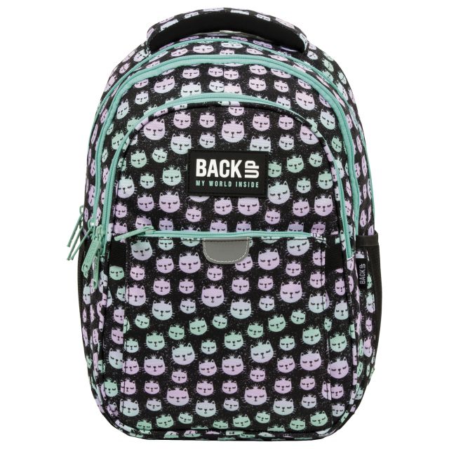 Nr: AW910DF Kod kreskowy: 5901130094080 Nr kat. PLB5P06 Skoro królem zwierząt jest lew, to czy królową jest kotka? Korona na głowach tych czarujących zwierzaków w pastelowe ombre, zdobiących plecak BackUP, mówi sama za siebie! Przeplatające się barwy różu, fioletu i turkusu na czarnym tle tworzą niezwykle urokliwą i delikatną kompozycję. Dzięki rozmiarom dopasowym do drobnej postury dziecka, jest to plecak stworzony specjalnie dla małych księżniczek!Plecak BackUP posiada: - 3 komory