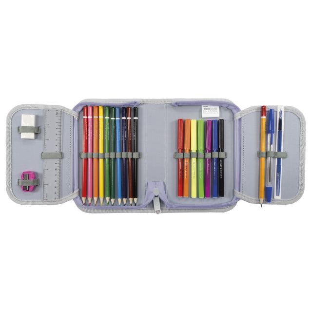 Nr: AW833DF Kod kreskowy: 5901130093656 Nr kat. PB5SW09 Tańczące na wietrze pióra i delikatne, pastelowe barwy to połączenie tworzące idealny piórnik dla dziewczynki. To romantyczna ekspresja różów, fioletów i błękitów z subtelnymi elementami szarości, która tworzy spójną i jedyną w swoim rodzaju kompozycję kolorów. Piórnik z kolekcji Pióra porywa do lotu w rozmarzonej krainie jeziora łabędzi, pełnej baletu, spektakli i magicznych bali, w której każda dziewczynka staje się księżniczką. Jednokomorowy piórnik BackUP z wyposażeniem posiada: - 2 klapki wewnątrz z planem lekcji i tabliczką mnożenia