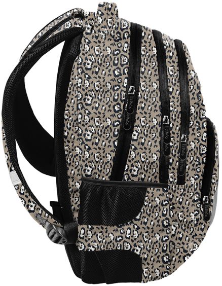 Plecak młodzieżowy, szkolny. Trzy pojemne komory, kieszeń przednia z organizerem, 2 boczne kieszenie z siatki+materiał. Wzmocnione profilowane plecy evafoam, miękkie wygodne szelki. Wzmocniony i usztywniony spód. Wygodny uchwyt do przenoszenia i uszko do powieszenia. W komorze głównej przegroda (na laptop), w drugiej komorze organizer z kieszenią na zamek, uchwyt na klucze. Elementy odblaskowe dla większego bezpieczeństwa. Wymiary: 40X30X18