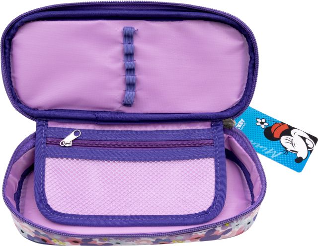 Owalny piórnik szkolny z klapką to niezbędny przedmiot uczniów. Wewnątrz na klapce znajdują się gumowe uchyty na przybory do pisania oraz skrzydło, na którym jest kieszonka z siateczki zamykana zamkiem błyskwicznym i kolejne gumowe uchwyty. Komora główna jest pojemna, korpus dodatkowo usztywniany. Na piórniku znajduje się motyw z serii Minnie Mouse. Duży piórnik z organizerem oprócz najważniejszych przyborów szkolnych, pomieści także m. in. pomadkę ochronną, chusteczki czy mały krem do rąk. Dzięki ruchomej przekładce, można oddzielić produkty kosmetyczne od szkolnych .Wyróżnia się na tle konkurecji tym, że dłuższy.