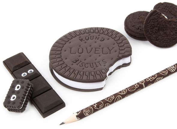 Pamiętnik o smakowitym waniliowym zapachu z dwoma równie słodkimi gumkami do mazania: ciasteczkiem i czekoladą oraz ołowkiem o twardości rysika HB. Pamiętnik w kształcie ciastka pomieści w swoim wnętrzu wiele sekretów i marzeń. Smakowite gumki wymażą każdy błąd ołówka. Zapachowy pamiętnik z akcesoriami sprawdzi się również jako szkicownik lub wyjątkowy prezent na każdą okazję.