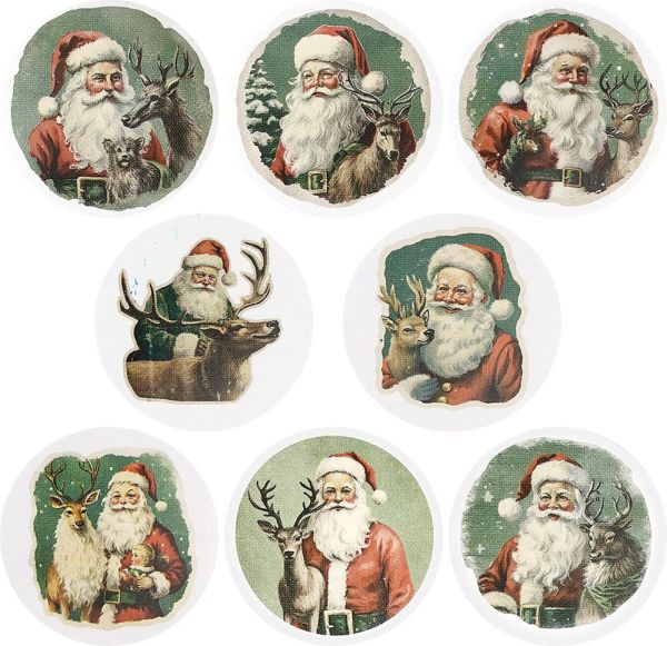 Titanum » Boże Narodzenie » Naklejki Bożonarodzeniowe » Naklejki papierowe na taśmie O25mm 8 wzorów Boże Narodzenie Mikołaj vintage 500szt. szerokość taśmy 28mm