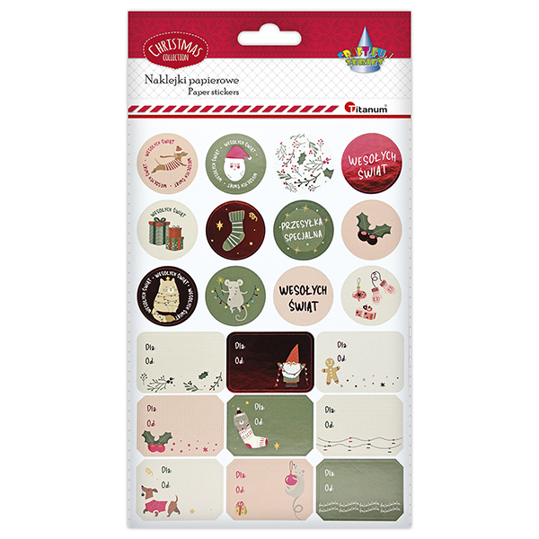 Titanum » Boże Narodzenie » Naklejki Bożonarodzeniowe » Naklejki papierowe okrągłe O28mm, etykiety prezentowe 41x28mm 21szt.