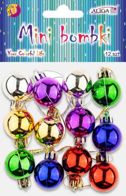 Aliga » Boże Narodzenie » Mini bombki BOM-4329 ze sznureczkami, rozm. 25mm, op. 12szt.