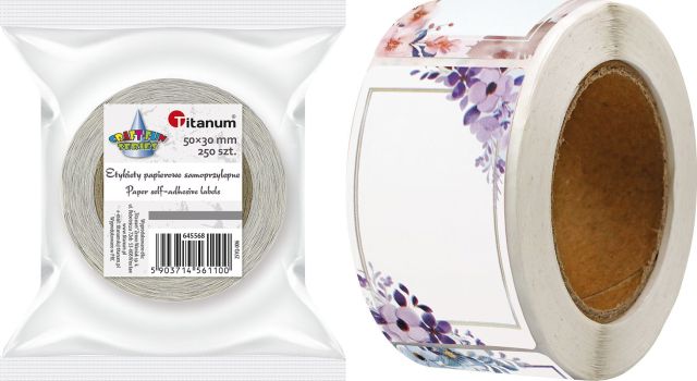 Titanum » Artykuły dekoracyjne całoroczne » Naklejki Dekoracyjne » Etykiety samoprzylepne 50x30mm na rolce 4 kolory/wzory kwiatowe 250szt.