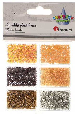 Titanum » Artykuły dekoracyjne całoroczne » Koraliki, Guziki » Koraliki plastikowe mix 6 rozmiarów 32g tonacja brązowa