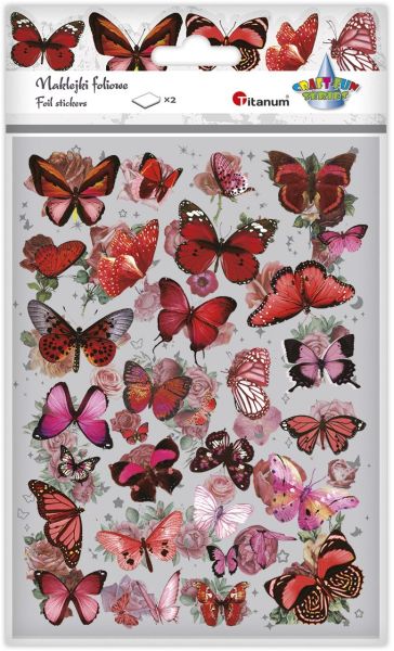 Titanum » Artykuły dekoracyjne całoroczne » Naklejki Dekoracyjne » Naklejki foliowe 2 plansze motyle, kwiaty tonacja czerwona
