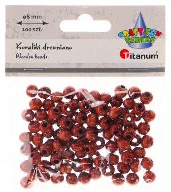 Titanum » Artykuły dekoracyjne całoroczne » Koraliki, Guziki » Koraliki drewniane okrągłe O8mm otwór O3mm lakierowane brązowe drewno 100szt.