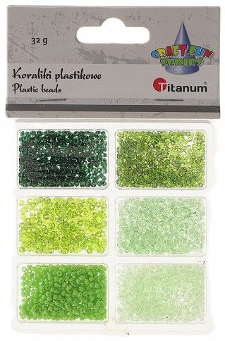 Titanum » Artykuły dekoracyjne całoroczne » Koraliki, Guziki » Koraliki plastikowe mix 6 rozmiarów 32g tonacja zielona