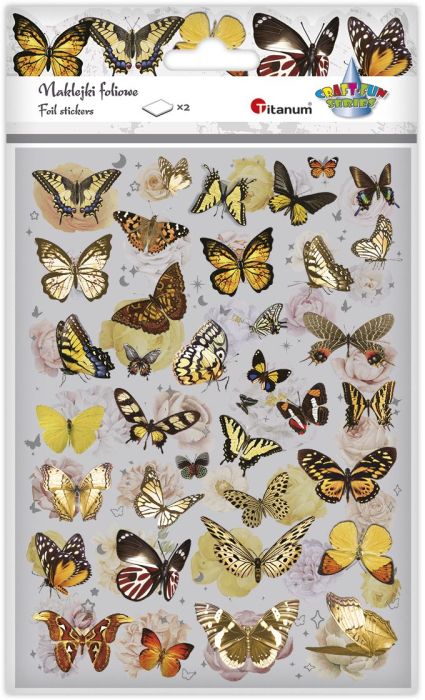 Titanum » Artykuły dekoracyjne całoroczne » Naklejki Dekoracyjne » Naklejki foliowe 2 plansze motyle, kwiaty tonacja żółta
