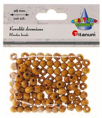 Titanum » Artykuły dekoracyjne całoroczne » Koraliki, Guziki » Koraliki drewniane okrągłe O8mm otwór O3mm lakierowane jasnobrązowe drewno 100szt.