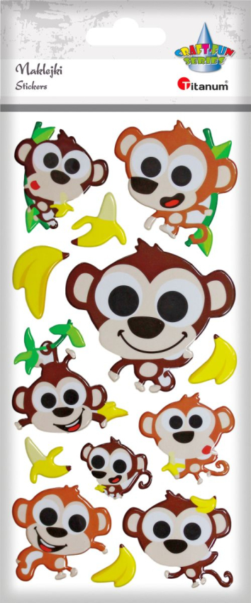 Titanum » Artykuły dekoracyjne całoroczne » Naklejki Dekoracyjne » Naklejki wypukłe miękkie małpki, banany 13szt.