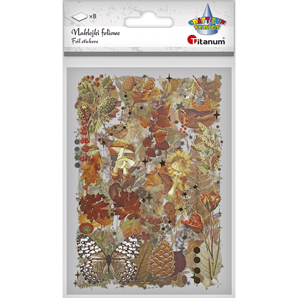 Titanum » Artykuły dekoracyjne całoroczne » Naklejki Dekoracyjne » Naklejki foliowe 8 plansz liście, grzyby, szyszki, kasztany, jeż