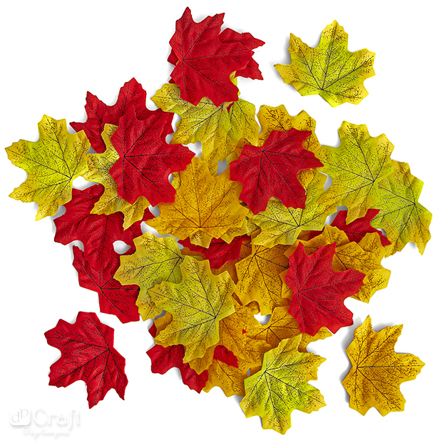 Zestaw 48 materiałowych liści to niezastąpiony dodatek do kompozycji florystycznych, stroików, scrapbookingowych projektów, pakowania prezentów czy dekoracji stołu.