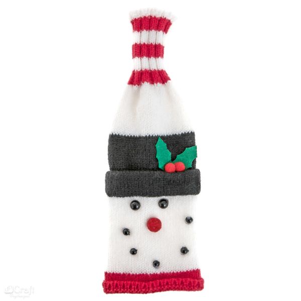 Zabawny dzianinowy pokrowiec na butelkę bałwanek. Stylowy i praktyczny dodatek do nakrycia świątecznego stołu. Idealny na święta, uroczyste kolacje w domowym zaciszu. Wykonane z miękkiej dzianiny wprowadzi wyjątkowy klimat do wspólnych chwil przy stole.