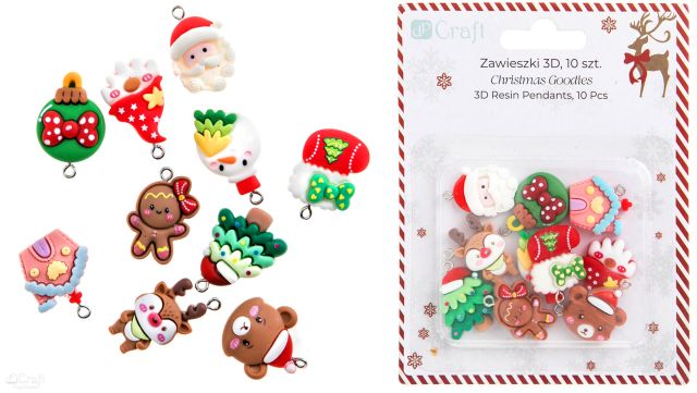 Zestaw 10 uroczych polimerowych zawieszek 3D w świątecznym klimacie to idealny dodatek do bożonarodzeniowych projektów kreatywnych.