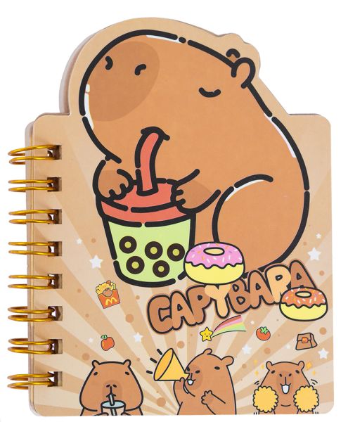 Uroczy notes w kompaktowym formacie 7.9 x 10.5 cm, wyposażony w wygodną spiralę, która ułatwia przewracanie stron. Zawiera 50 kartek ozdobionych motywem kapibary z przekąskami, co dodaje mu wyjątkowego charakteru. Idealny do notowania ważnych informacji, pomysłów czy listy zadań. Doskonały wybór dla miłośników kapibar oraz osób ceniących stylowe i praktyczne akcesoria papiernicze.