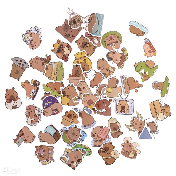Winylowe naklejki kapibara 50 szt. Naklejki winylowe z zabawnymi kapibarami to fantastyczne i trwałe elementy dekoracyjne.