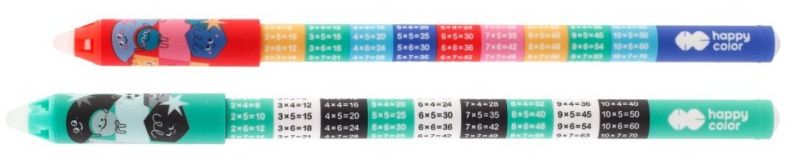 Długopis Happy Color Tabliczka Mnożenia to doskonałe połączenie funkcjonalności i edukacji! Idealny dla uczniów szkół podstawowych – kolorowa obudowa z nadrukowaną tabliczką mnożenia pomaga w nauce matematyki podczas pisania. Dzięki niebieskiemu tuszowi żelowemu i funkcji wymazywania, błędy można szybko poprawić bez użycia korektora. ✏️💙