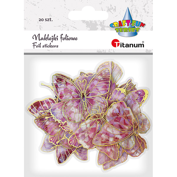 Titanum » Artykuły dekoracyjne całoroczne » Naklejki Dekoracyjne » Naklejki foliowe motyle 10 wzorów tonacja różowo-złota 20szt.