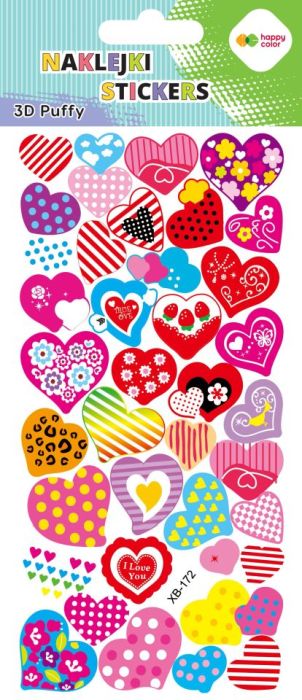 Gdd » Happy Color » Tatuaże, Naklejki, Breloki » Naklejki 3D PUFFY-Colorful Hearts, 9.5 cm x 22 cm, Happy Color [opakowanie=5szt]