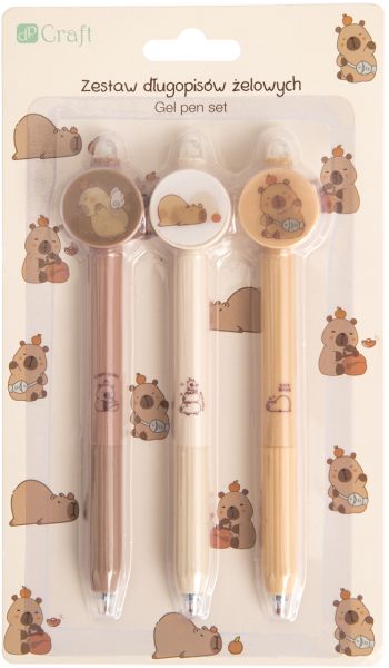 ZESTAW DŁUGOPISÓW ŻELOWYCH ZMAZYWALNYCH - KAPIBARA, 3 SZT - NIEBIESKIE [opakowanie=6szt]