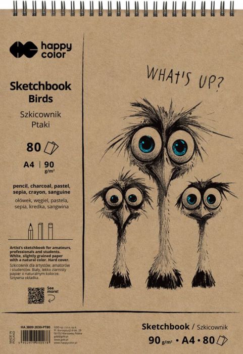 Szkicownik na spirali PTAKI A4, biały, 80 ark, 90g, Happy Color [opakowanie=5szt]