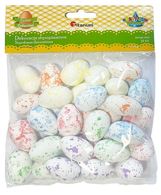 Titanum » Artykuły dekoracyjne całoroczne » Wielkanoc » Dekoracje styropianowe jajka 20x30mm mix 6 kolorów 36szt. kolory: żółte, pomarańczowe, zielone, niebieskie, różowe, fioletowe TITWLK26