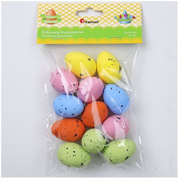 Titanum » Artykuły dekoracyjne całoroczne » Wielkanoc » Dekoracje styropianowe jajka przepiórcze 30x40mm mix 5kolorów pastelowych 12szt. kolory: żółte, pomarańczowe, zielone, niebieskie, różowe TITWLK26