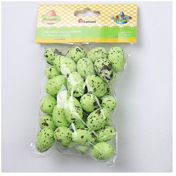 Titanum » Artykuły dekoracyjne całoroczne » Wielkanoc » Dekoracje styropianowe jajka przepiórcze 20x30mm zielone 53szt. TITWLK26