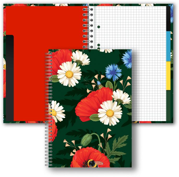 Tadeo Trading » Nowości Tadeo » PENMATE BRULION B5 W TWARDEJ OPRAWIE Z PRZEKŁADKAMI 160 KARTEK W KRATKĘ T0127 KWIATY POLSKIE MAKI W ZIELENI FOLIA MAT NIERYSUJĄCA