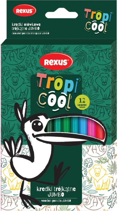 KREDKI OŁÓWKOWE TRÓJKĄTNE JUMBO 12kol. / REXUS TROPICOOL