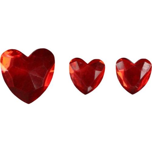Kryształki samoprzylepne serca mix rozmiarów 9x10/8x8/6x7mm czerwone 88szt.