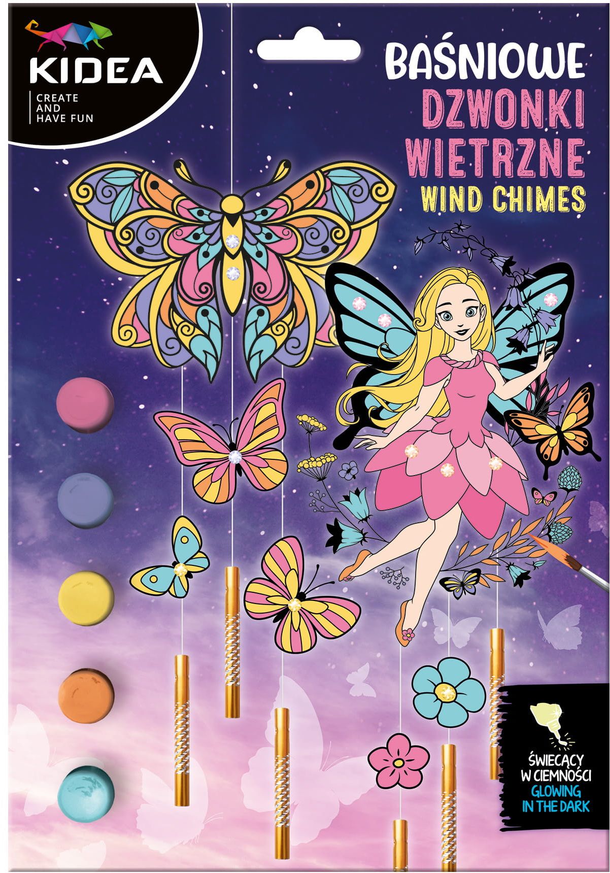 BAŚNIOWE DZWONKI WIETRZNE ŚWIECĄCE W CIEMNOŚCI KIDEAMagiczne dzwonki wietrzne świecące w ciemności. Zaprojektuj swoje własne dzwonki z tekturowym szablonem wróżki i pięknego motylka otoczonymi baśniowymi elementami, które pięknie ozdobią pokój. Zestaw zawiera wszystko co jest potrzebne do stworzenia... |
