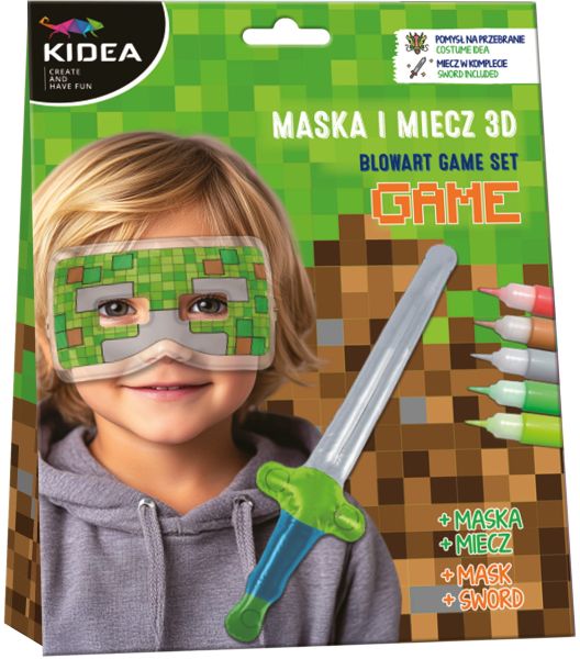 ZESTAW 3D BLOWART GAME KIDEAZestaw 3D z maską i dużym mieczem wysokości 36 cm. Pokoloruj maskę wybranymi kolorami żelu. Poczekaj, aż żel całkowicie wyschnie - około 5h. Włóż rurkę do maski i nadmuchaj ją nadając odpowiedni kształt. Po wyjęciu rurki zawór automatycznie się zamknie,... |