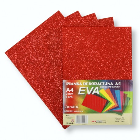 PIANKA EVA BROKAT A4 CZERWONA 2. BGLE-024 BIODEGRADOWALNA a5✨ Pianka EVA brokatowa PENWORD A4 czerwona biodegradowalna 5 arkuszy