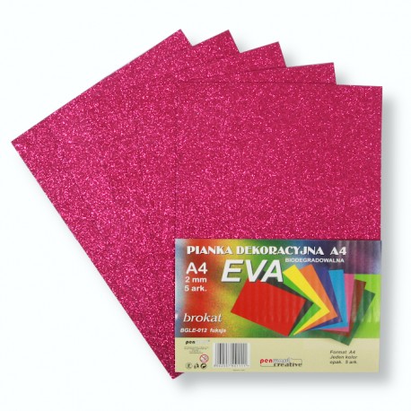 PIANKA EVA BROKAT A4 FUKSJA BGLE-012 BIODEGRADOWALNA a5✨ Pianka EVA brokatowa PENWORD A4 fuksja biodegradowalna 5 arkuszy