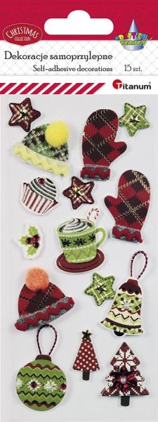 Dekoracje samoprzylepne 3D czapki, rękawiczki, choinki 15szt.