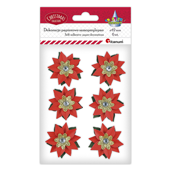 Dekoracje samoprzylepne papierowe 3D poinsecje O44mm 6szt.🌺 Naklejki papierowe 3D Titanum Craft-Fun Series – Poinsecje 6szt.