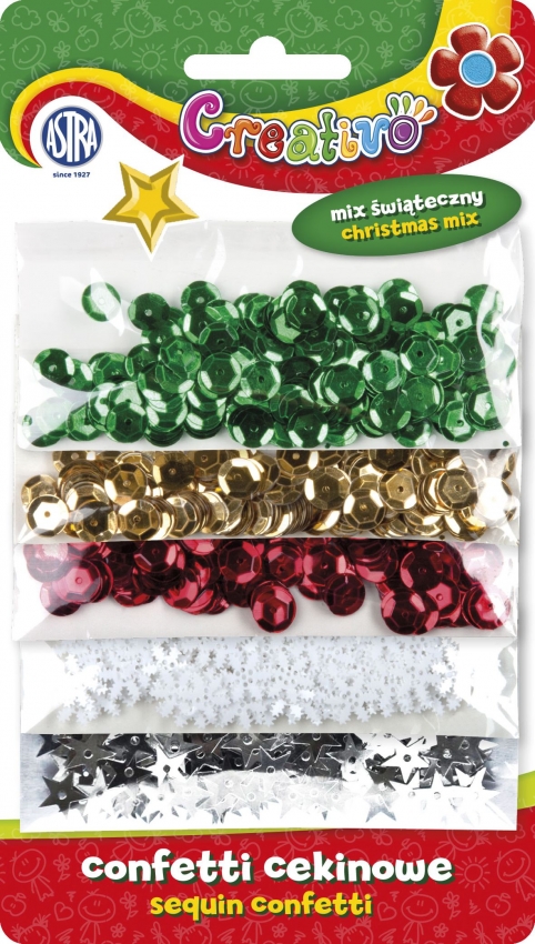 Confetti cekinowe kółka na blistrze Creativo - mix 5 wzorów świątecznych 1000 sztuk HURT [opakowanie=6szt] |