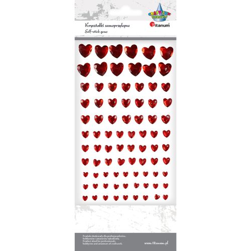 Kryształki samoprzylepne serca mix rozmiarów 9x10/8x8/6x7mm czerwone 88szt. kryształki samoprzylepne , |