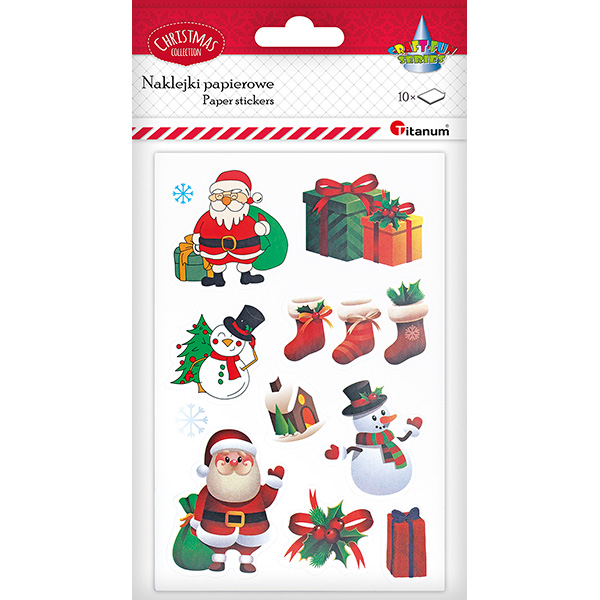 Naklejki papierowe 10 plansz Mikołaje, bałwanki, prezenty, skarpety 9 wzorów - 90szt. |