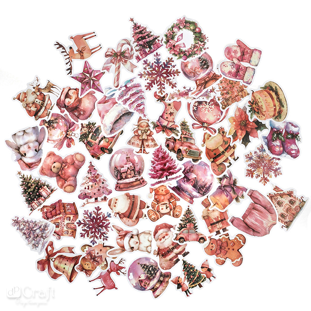 NAKLEJKI WINYLOWE - ŚWIĄTECZNE 4-6 CM, 64 SZT. - VINTAGE PINK [opakowanie=6szt]Winylowe naklejki z vintage motywami świątecznymi w kolorze różowym, wielkośc 4-6 cm, w zestawie 50 sztuk