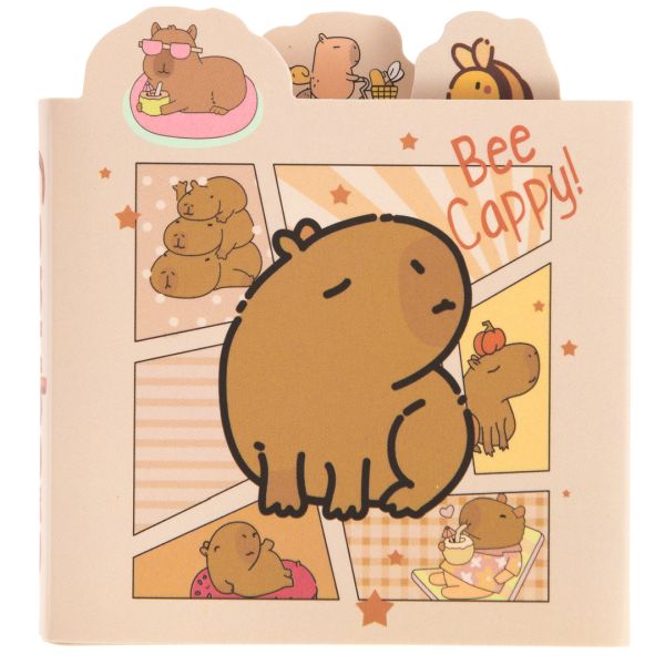 Składany notes z motywem kapibary zawiera sześć różnych zestawów karteczek. Twarda, składana okładka skutecznie chroni kartki przed zagięciami, dzięki czemu notes świetnie sprawdza się w torebce czy plecaku. Wygodne rozwiązanie do codziennych zapisków...