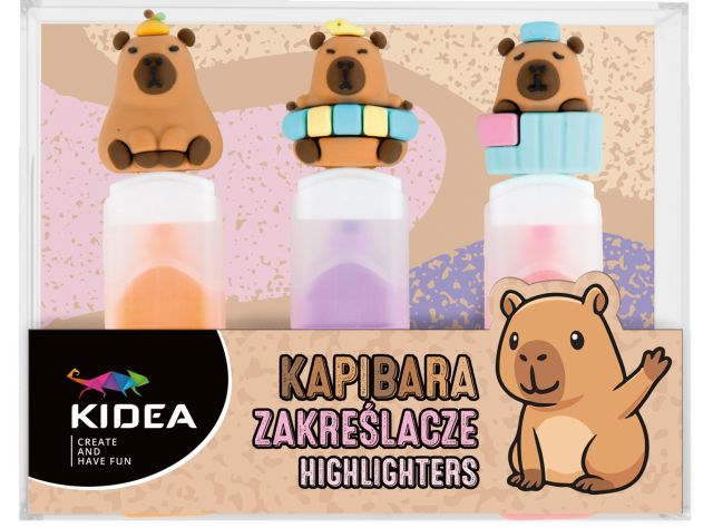 ZAKREŚLACZE KAPIBARA KIDEAZestaw 3 zakreślaczy w kształcie kapibary, dostępny w nasyconych kolorach: fioletowym, pomarańczowym i różowym. Każdy zakreślacz ozdobiony jest zabawną kapibarą trzymającą, co czyni go unikatowym i przyciągającym wzrok dodatkiem do biura, szkoły i... |