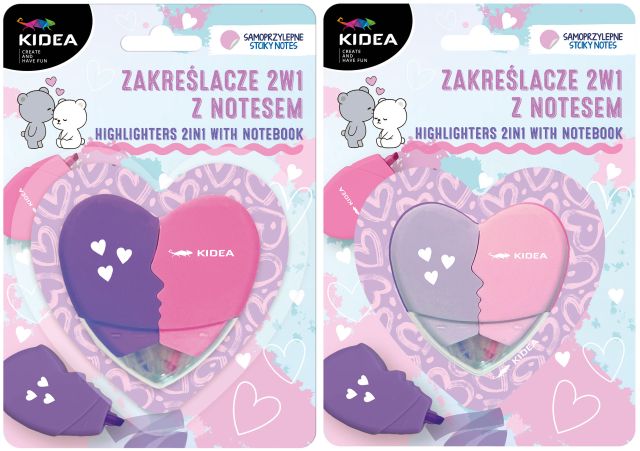 ZAKREŚLACZE SERCE 2W1 Z NOTESEM KIDEAZestaw 2 zakreślaczy tworzących razem kształt serca. Zakreślacze zapewniają wyraźne i estetyczne podkreślenia tekstu. W komplecie znajduje się także notes w kształcie serca z karteczkami samoprzylemnymi, które doskonale sprawdzą się do notowania ważnych... |