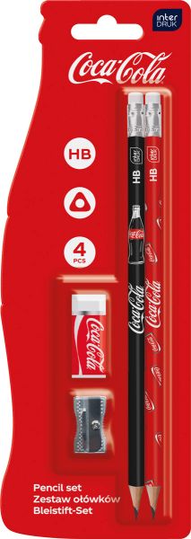 Zestaw ołówków 2 szt. + gumka + temp. metalowa Coca-Cola |