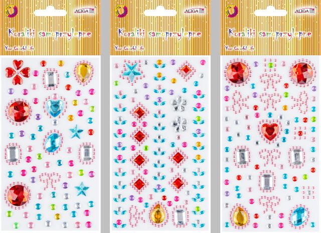 Dżety, mix wzorów i kolorówDżety, kryształki samoprzylepne. Mix wzorów i kolorów. Wymiary blistra: 9 cm x 16 cm |