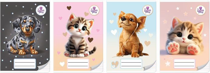 ZESZYT A5/16k. kolorowe trzy linie / THE SWEET PETS [opakowanie=20szt]