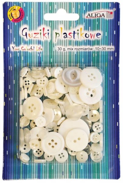 Guziki plastikowe, mix rozmiarów, kol. biały |